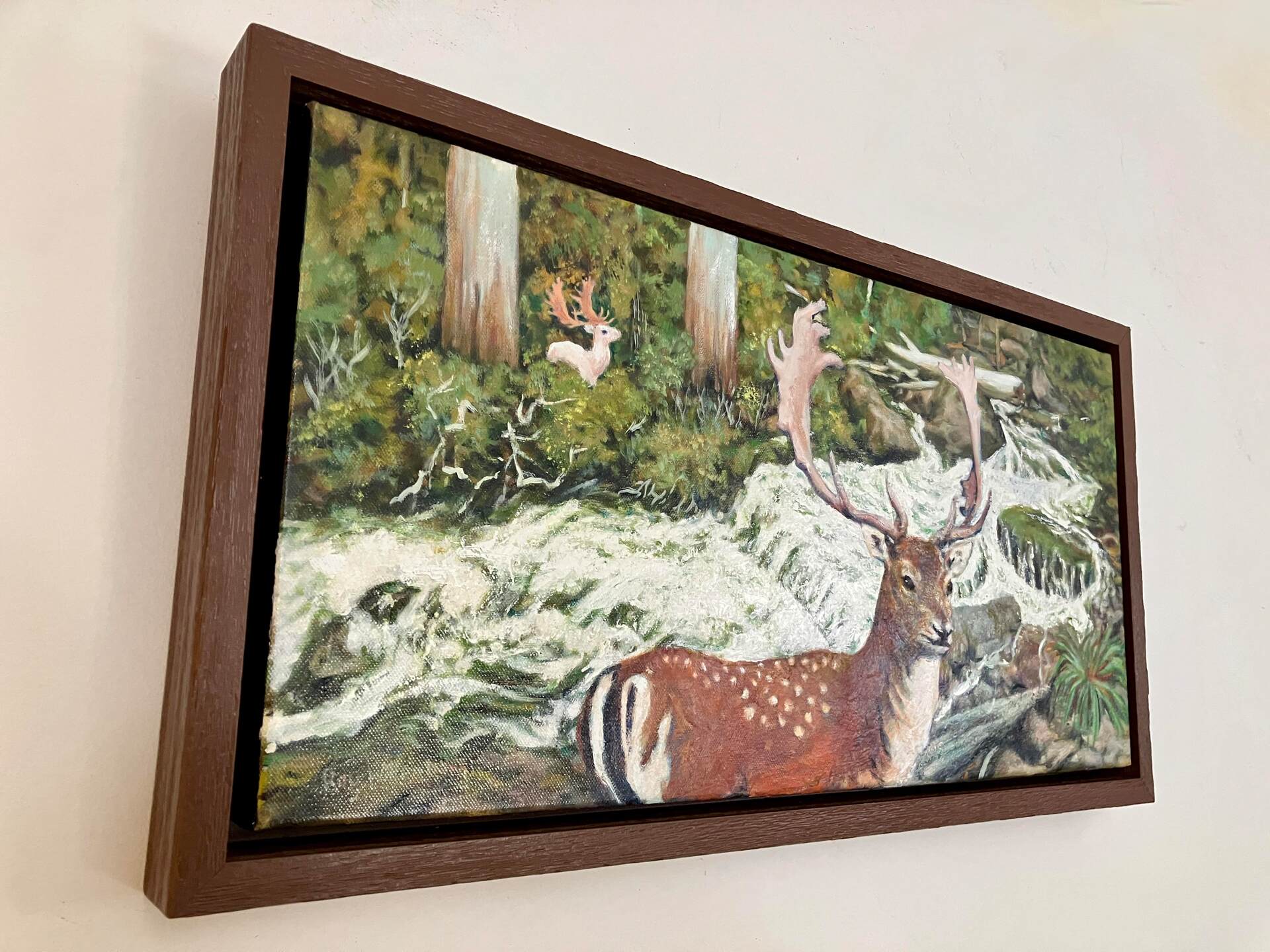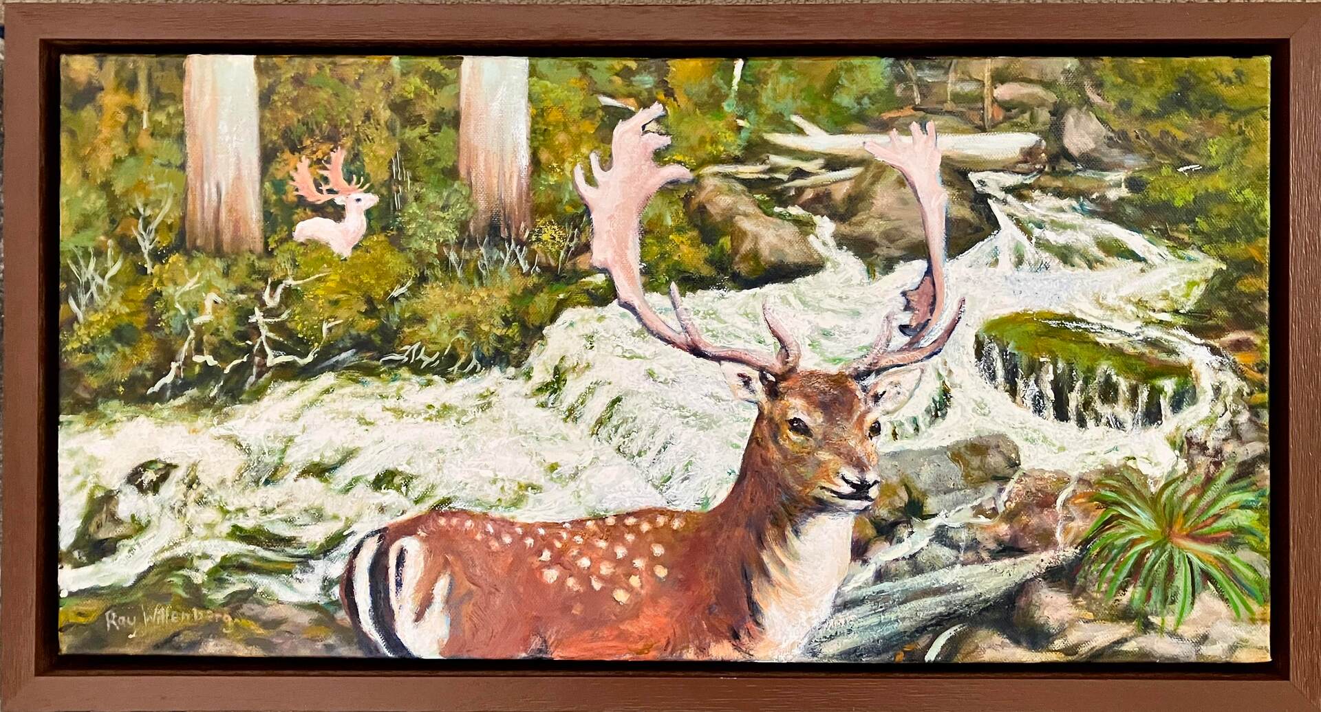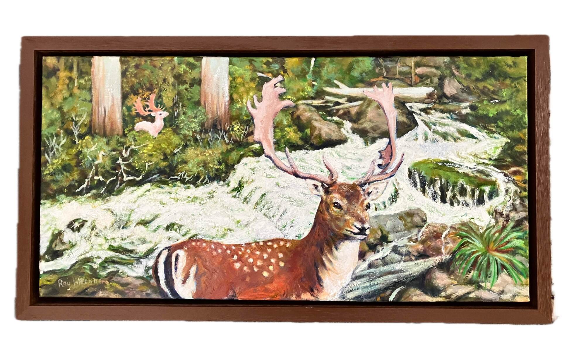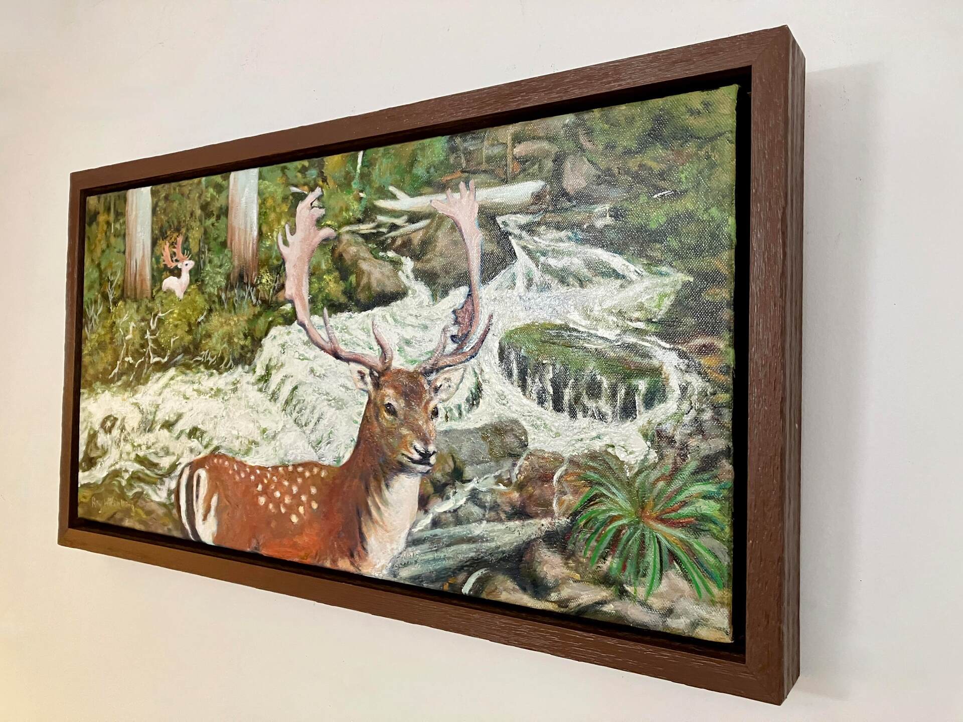 oil on canvas, framed in wood, winter rapids, Southern Tasmania, Park creek, Derwent Valley.